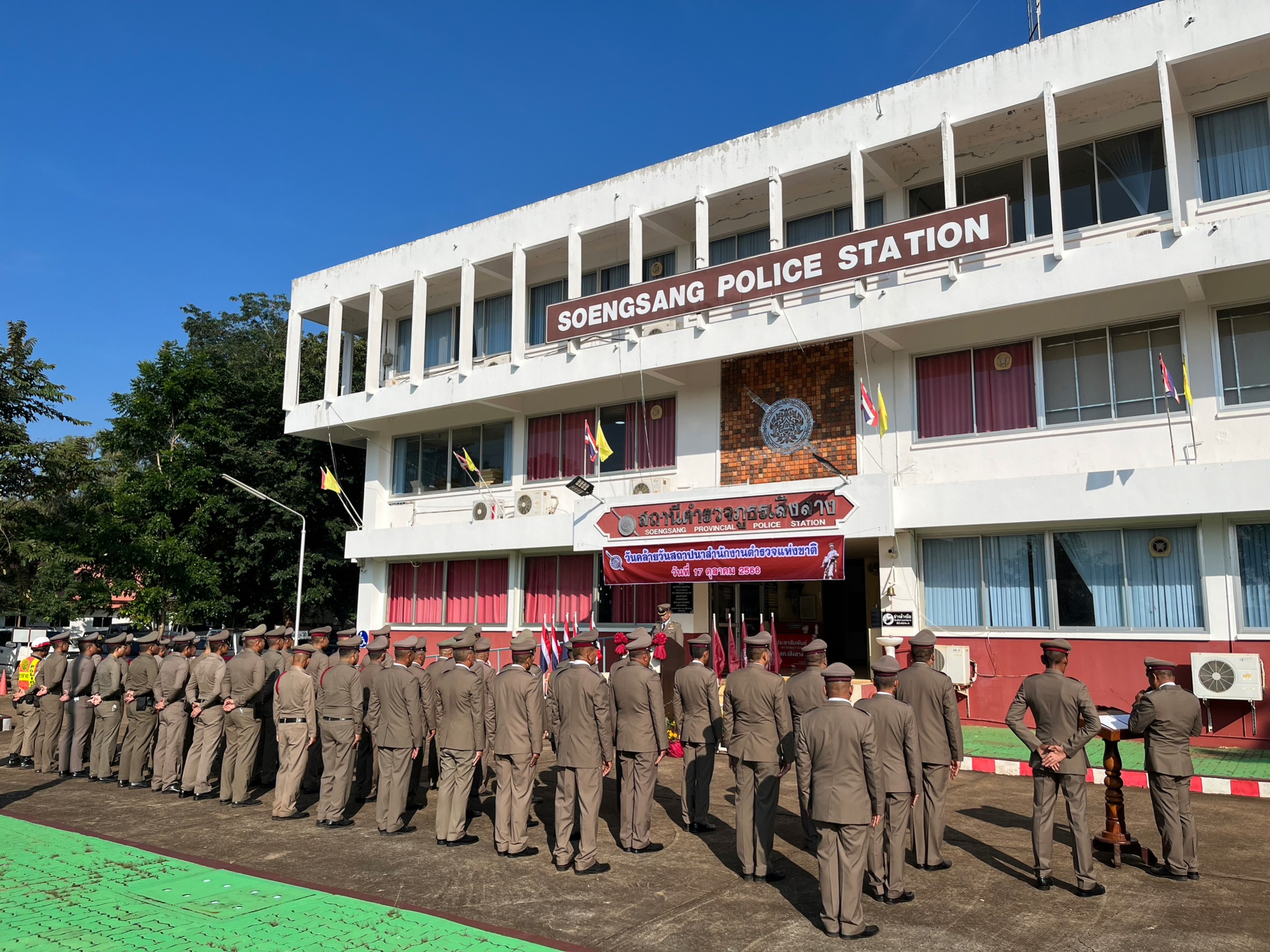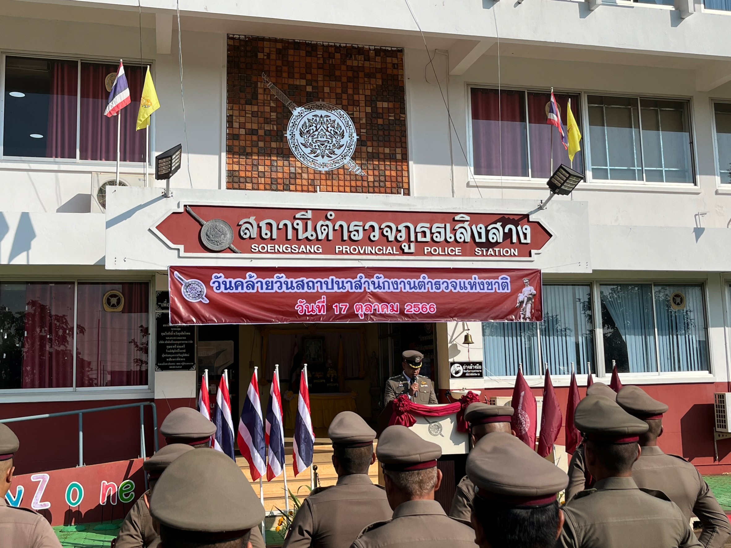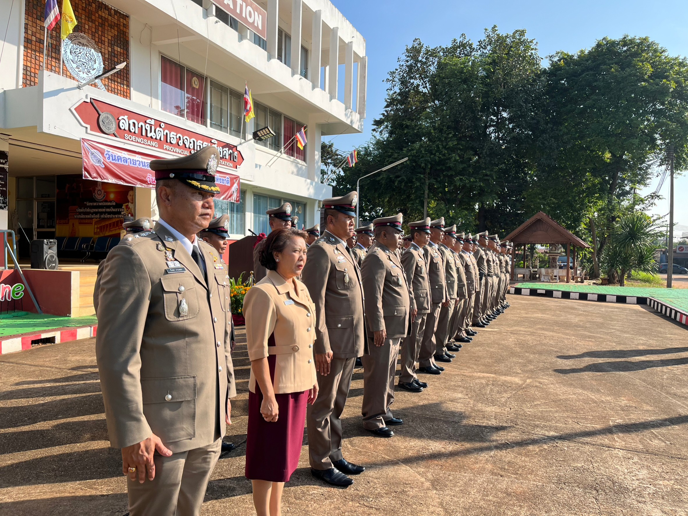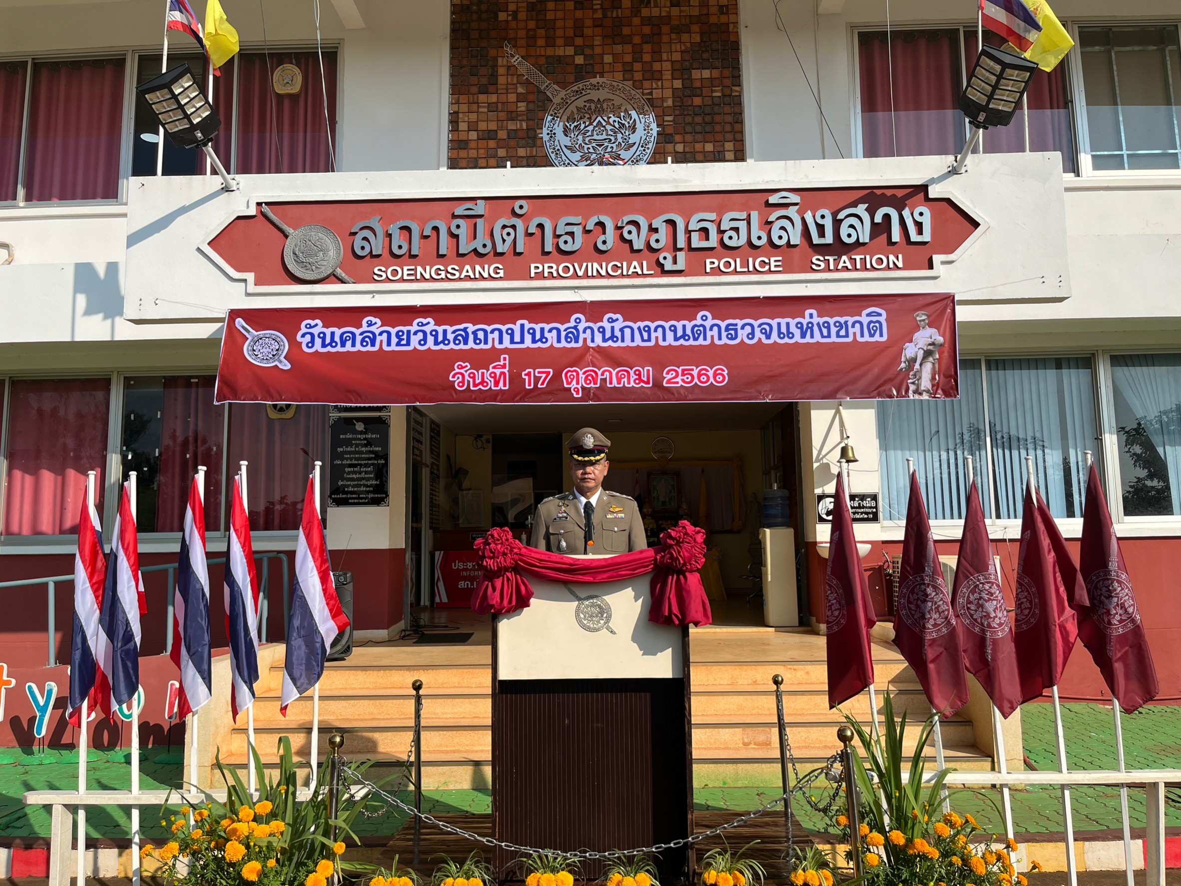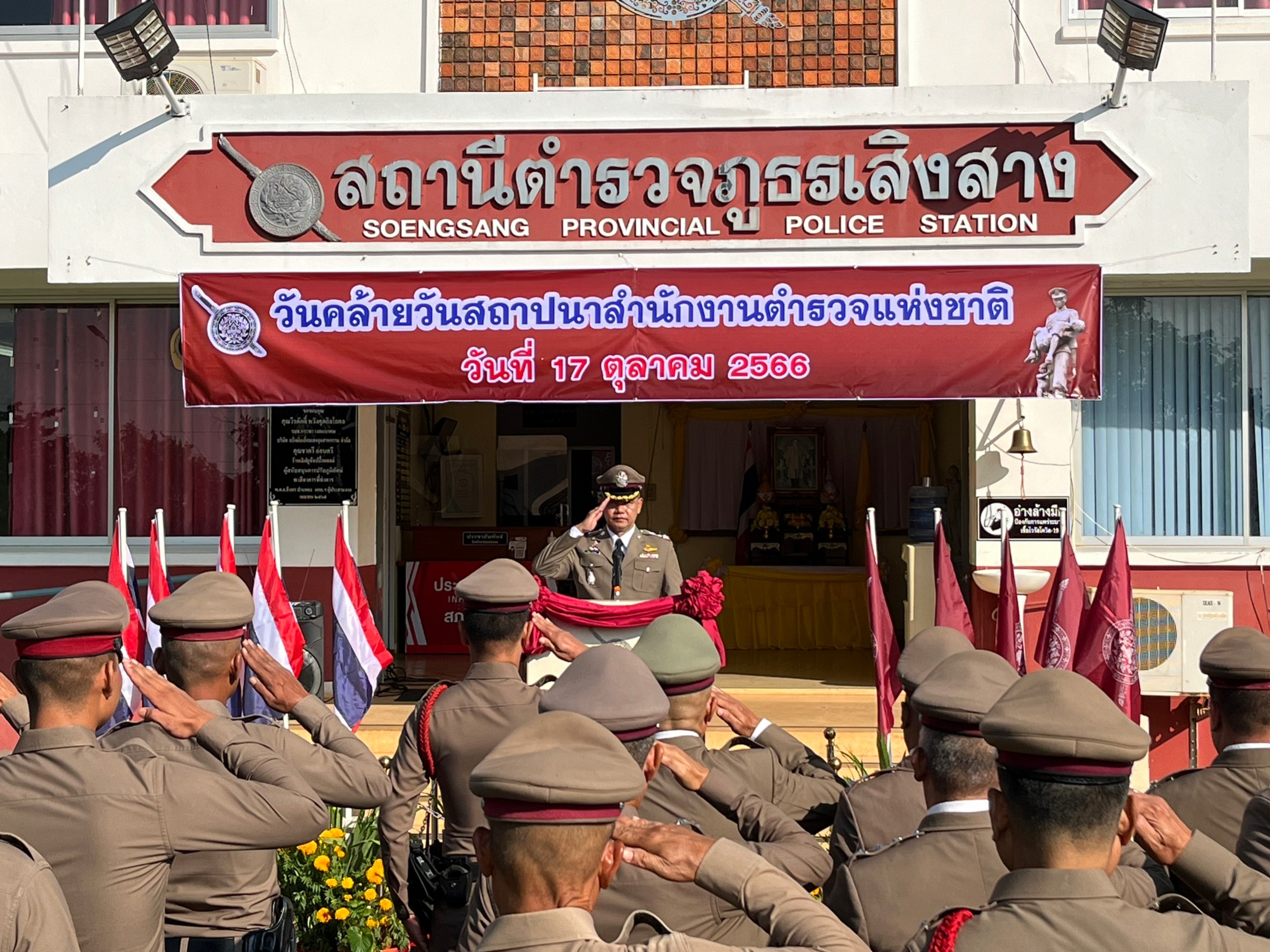 วันสถาปนาสำนักงานตำรวจแห่งชาติ 17 ตุลาคม 2023 โดย admin / ข่าวภารกิจผู้บังคับบัญชา วันที่ 17 ตุลาคม 2566 เวลา 08.00 พ.ต.อ.ถึงพร ปานทอง ผกก.สภ.เสิงสาง นำข้าราชการตำรวจ สภ.เสิงสาง ร่วมเคารพธงชาติ พร้อมกล่าวคำสัตย์ปฏิญานตน เนื่องในวันสถาปนาสำนักงานตำรวจแห่งชาติ 17 ตุลาคม 2566